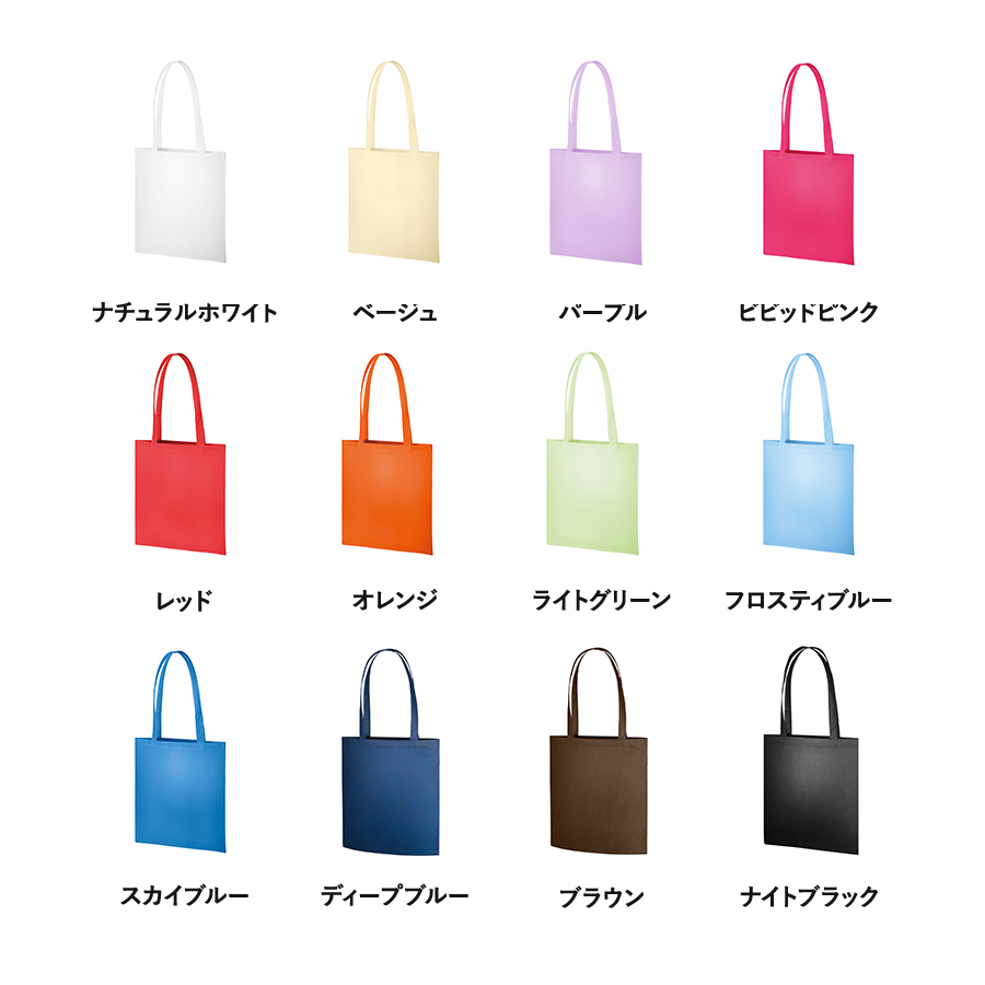 豊富なカラーバリエーションから選べる、スマートなショルダータイプの不織布トートバッグです。A4サイズをゆとりをもって入れていただけるサイズ感です。イベントや説明会などで、ちょっとした資料や冊子を配りたいときにも便利な肩掛け可能な仕様です。企業カラーやデザインに合わせてお好みのカラーを選ぶことで、販促効果も高まります。