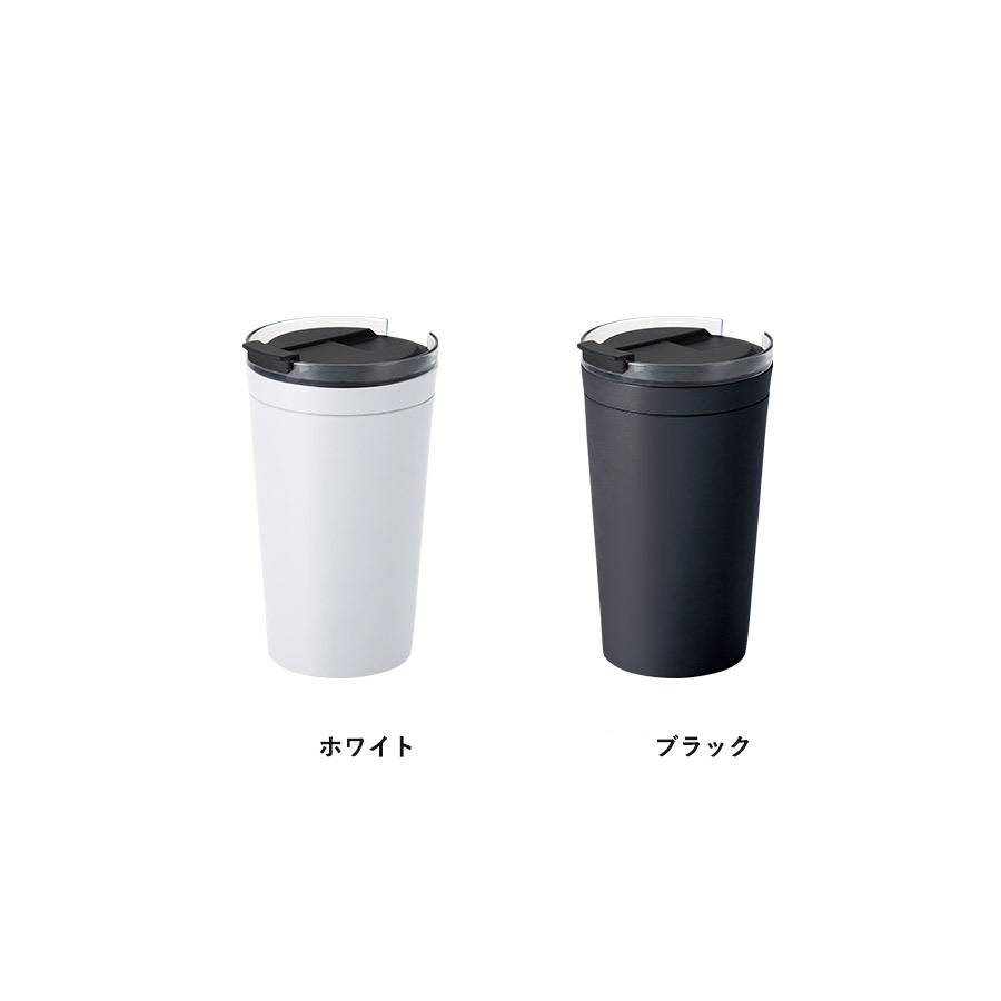 蓋の一部がクリアデザインのシンプルなプラサーモタンブラーです。蓋の一部がクリアになっていることで、飲み物を飲む際に中身が見えて飲みやすいのがポイントです。中の層を厚くし、より多くの断熱材(ウレタン)を入れられるよう設計することで保温保冷性能もアップし実用性も抜群です。350ml・500mlの2サイズ展開で、350mlはオフィスでの使用にちょうど良いサイズ感です。