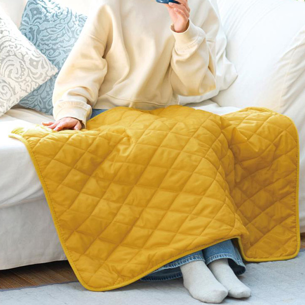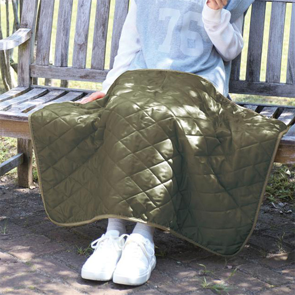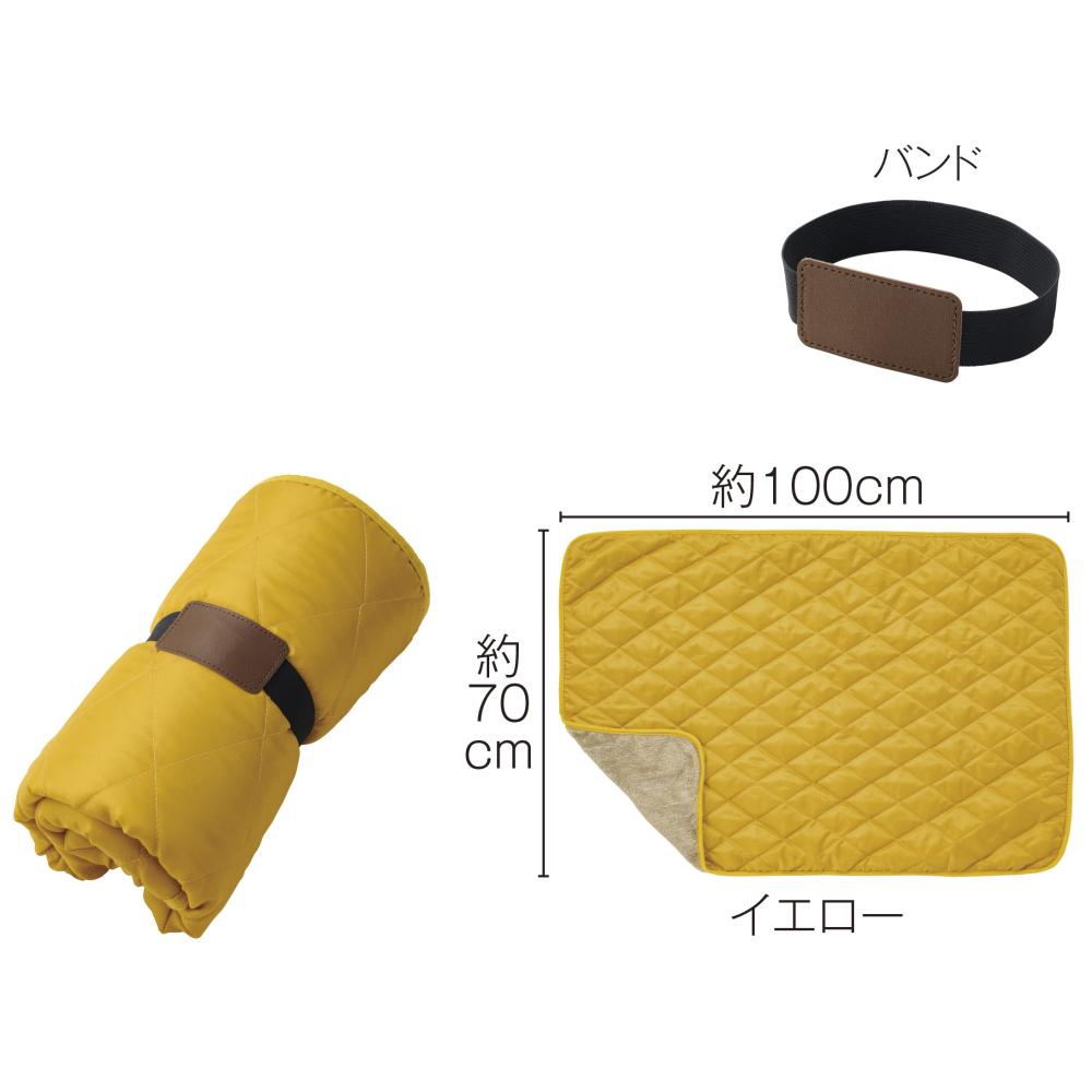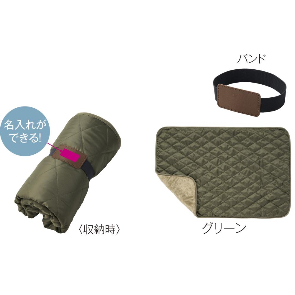一味変わったブランケットをお探しなら!風を通しにくいキルティング×ふかふかボアの張り合わせ。くるっとまとめておけるゴムバンドには名入れができるスペースがあります。大人でもゆったり使える大判サイズです。室内でも屋外でもなじむマスタード調のイエローとカーキ調のグリーンの2色アソート。