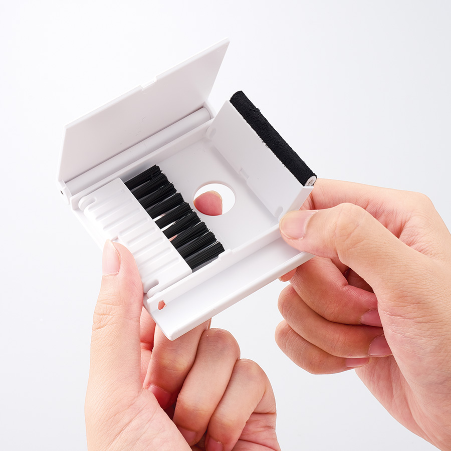 スマホスタンドにもなる2WAY PCクリーナーです。2種類のブラシが付いており、PC画面やキーボードの埃などをきれいに取り除いてくれます。フタをあけてスマホをたてかければ便利なスマホスタンドとしてデスクで便利にお使いいただけます。また名入れ範囲が大きく取れるため、販促効果もばっちりです。