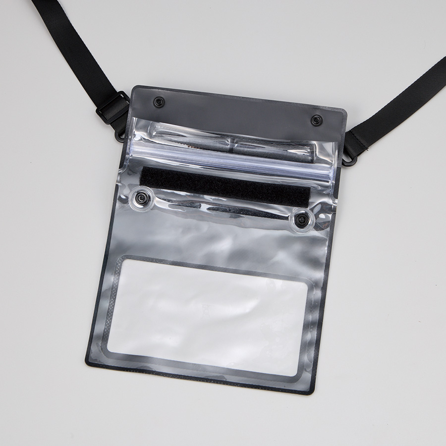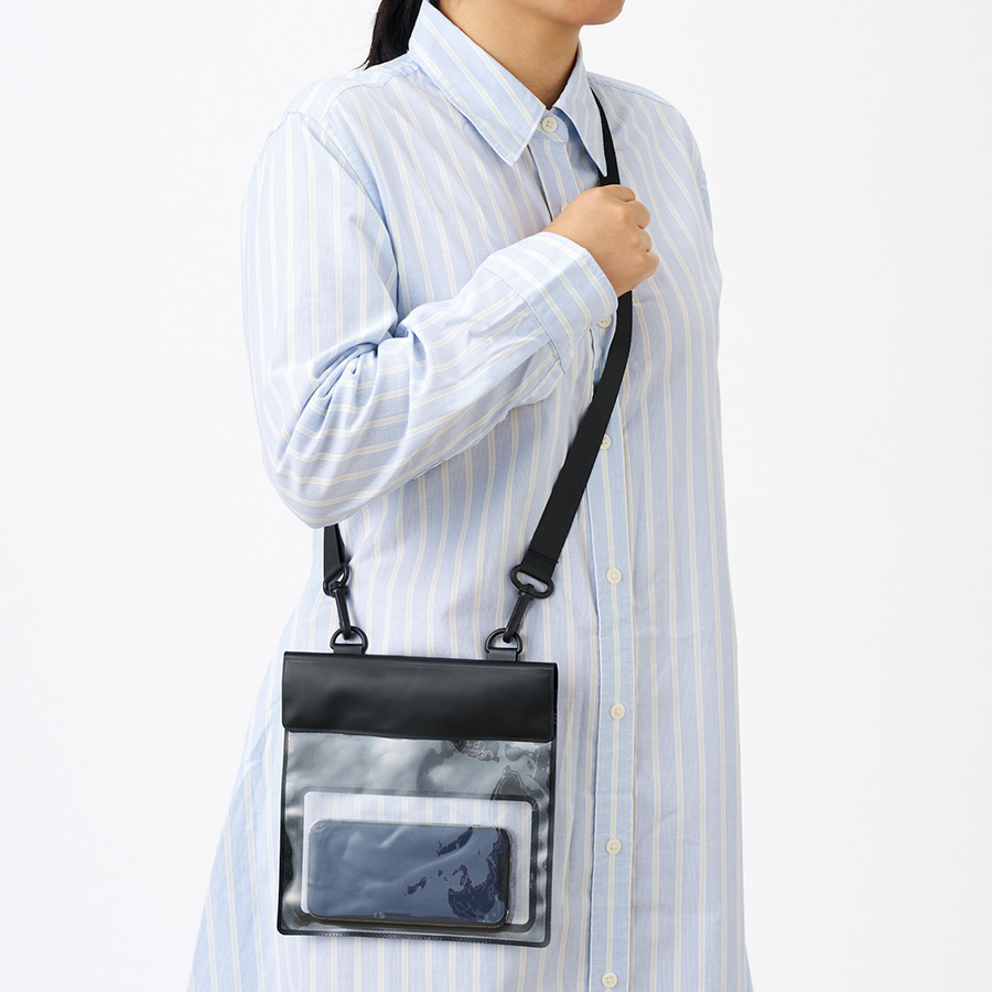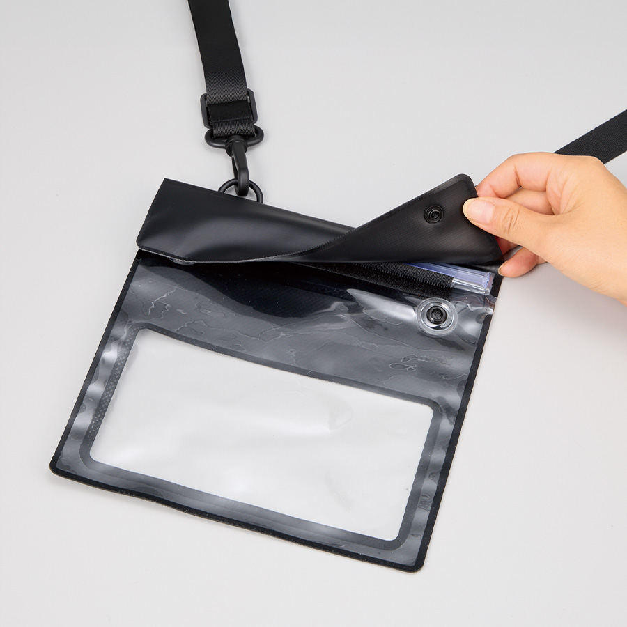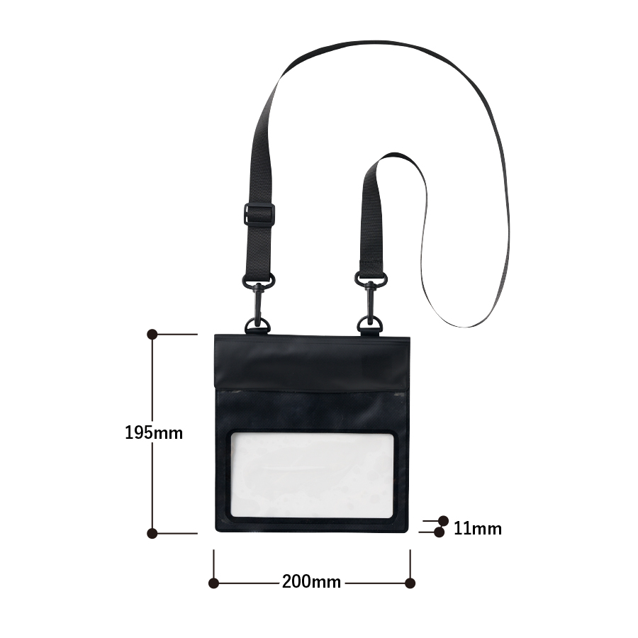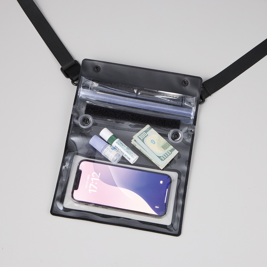 ウォータープルーフタイプのサコッシュです。スマートフォン以外にも貴重品などの小物を一緒に収納することができます。サコッシュに入れたまま、スマートフォンの操作が可能なため夏のキャンプ、レジャー、野外フェス、また冬のウインタースポーツなどさまざまなシーンでご活用いただけます。ショルダー部分は長さ調節が可能でお好みの長さにすることができます。