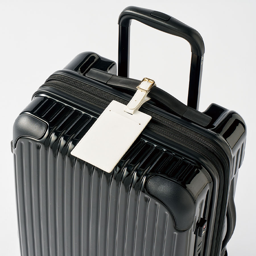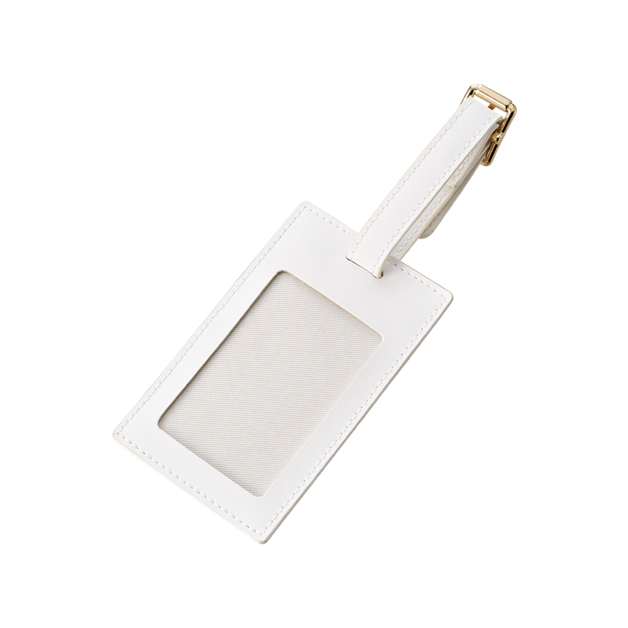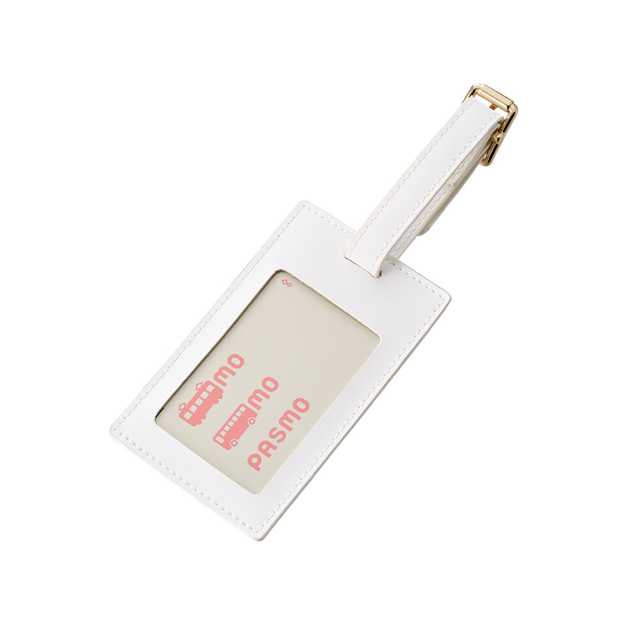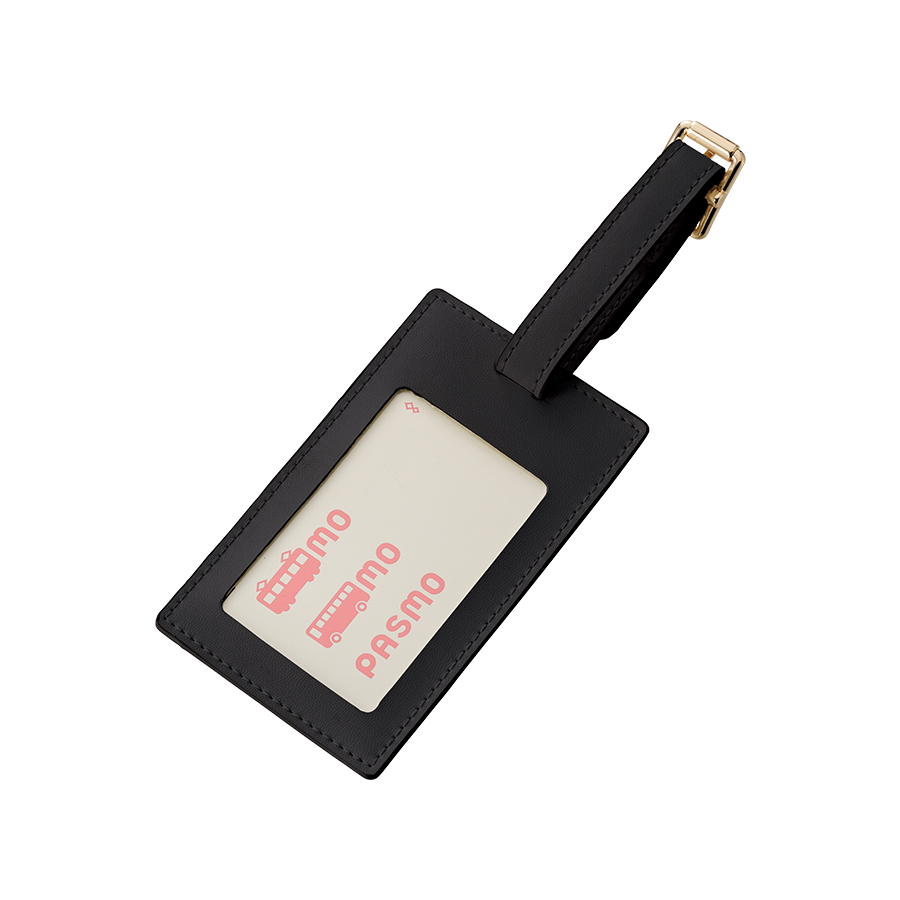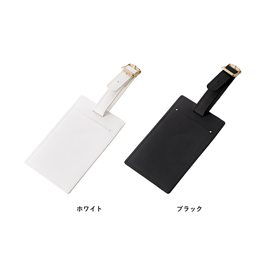 全面フルカラー印刷対応の合皮ラゲッジタグです。PUレザーとゴールドの金具で高級感のあるデザインです。またラゲッジタグだけではなく、ICカードケースとして使用することも可能です。