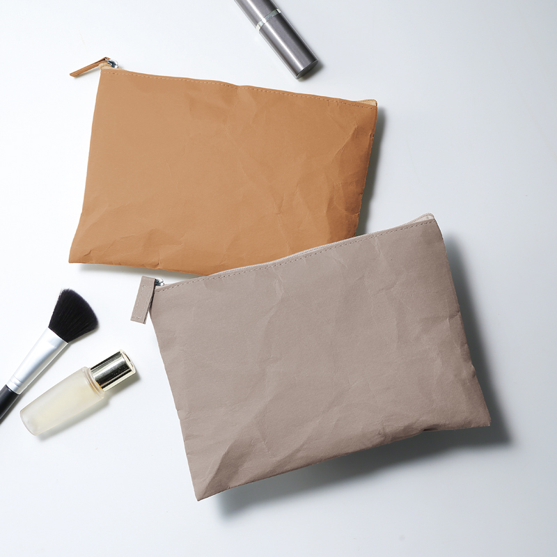 紙のような風合いで、洗える新素材を使用したポーチ。紙の質感を持ちながら耐久性に優れ、水洗いも可能なウォッシャブルペーパー素材を使用したフラットポーチです。ナチュラルで洗練されたデザインもポイント。軽量でかさばらず、日常使いしやすいため、配布後も長く使われる実用性の高い販促アイテムです。