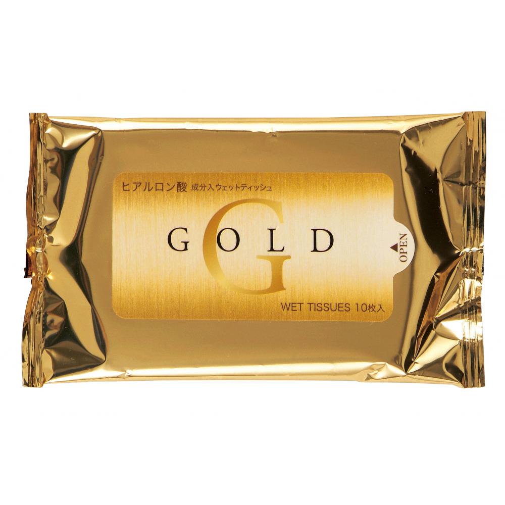 ウェットティッシュ10枚ゴールド(ヒアルロン酸配合)